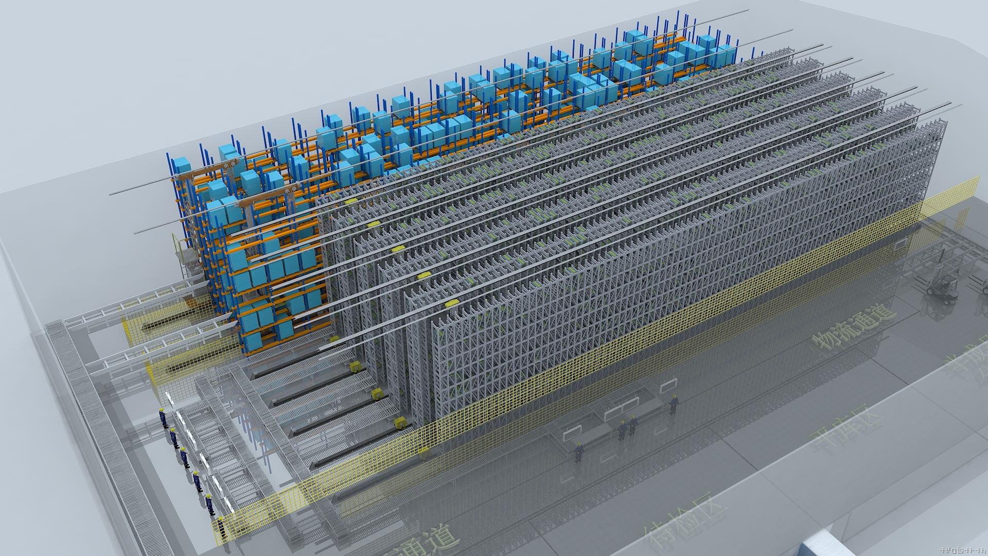 由立體貨架、堆垛機、輸送設備、信息識別系統、自動控制系統、計算機監(jiān)控和管理系統及其他輔助設備組成的智能化系統。
